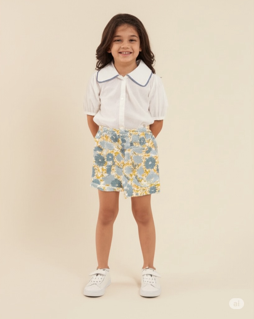 Dantel Yaka Beyaz Gömlek Şort İkili Takım