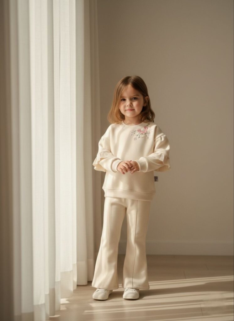 Nakışlı İspanyol Paça Üç İp Şardonlu Kız Çocuk Takımı