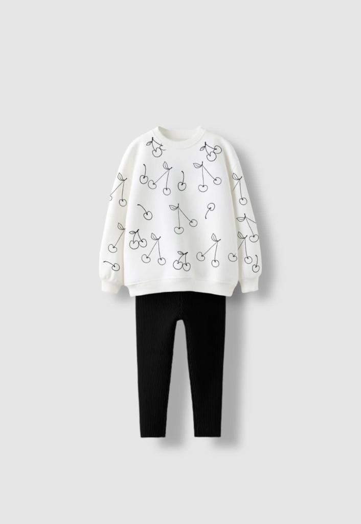 Kiraz Desenli Sweat Tayt Kız Çocuk İkili Takım
