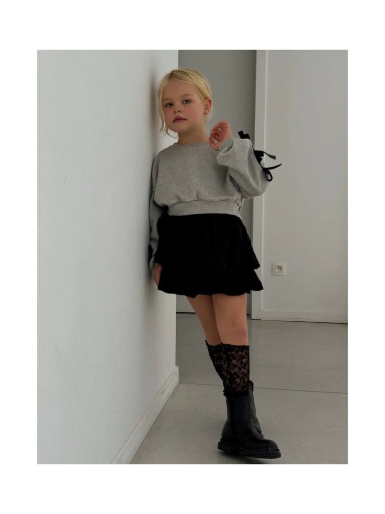 Kurdele Detaylı Fırfır Etekli İkili Kız Çocuk Takımı