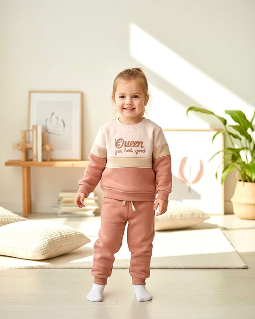 Queen Nakışlı Cepli Şardonlu Üç İp Kız Çocuk Takım