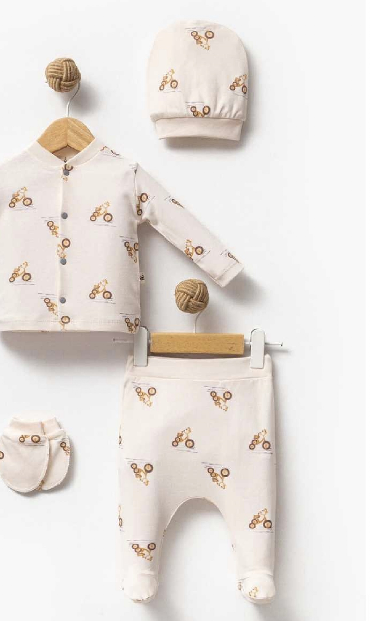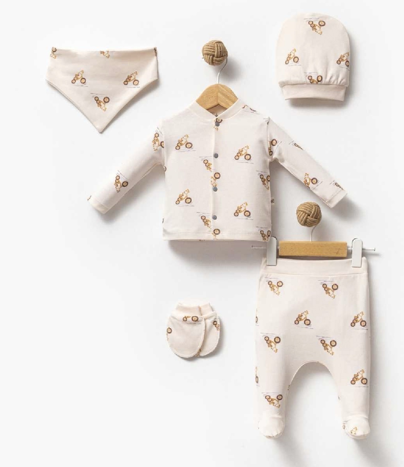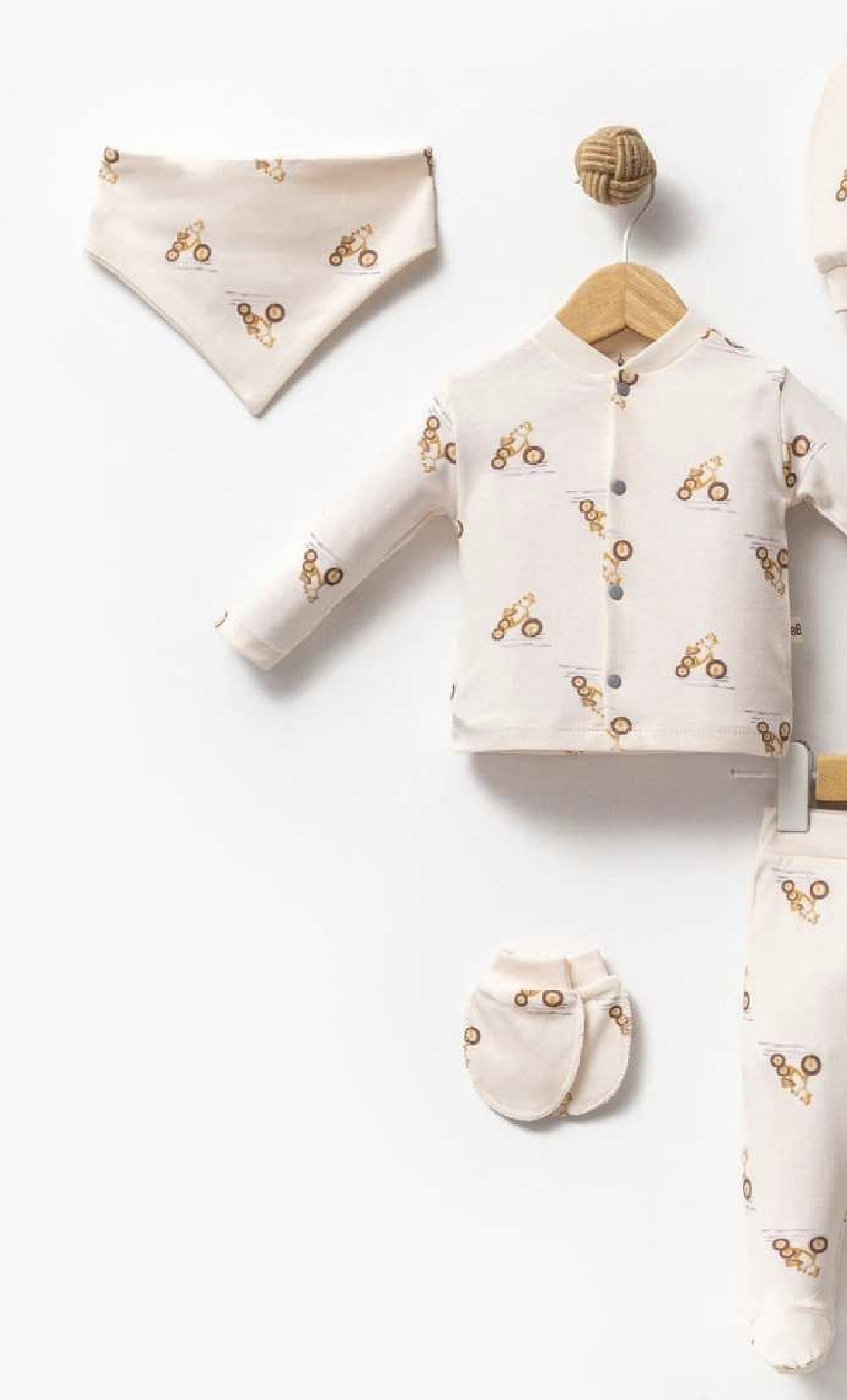 Bisiklet Desen Baskılı Beş Parçalı Bebek Takımı