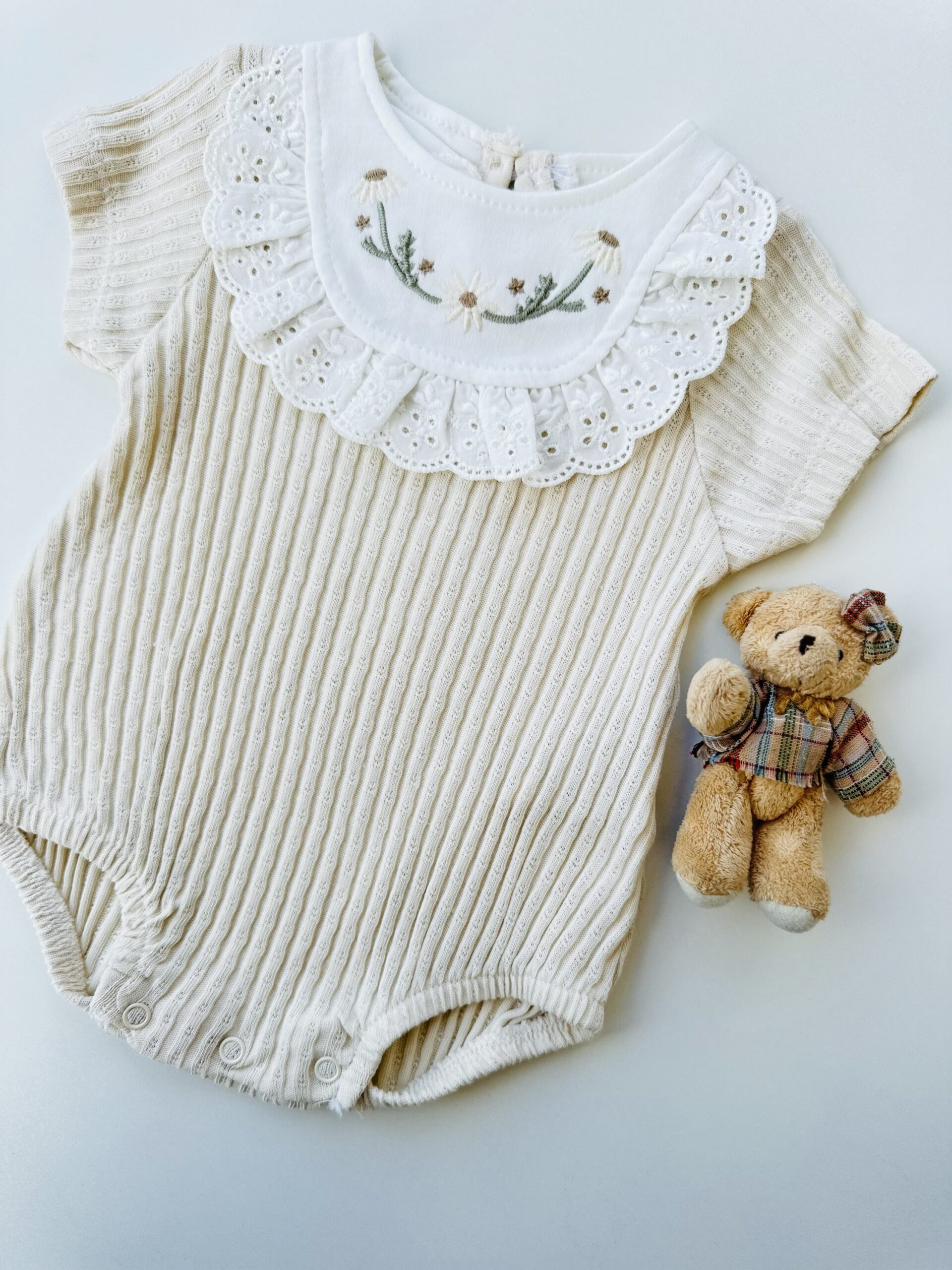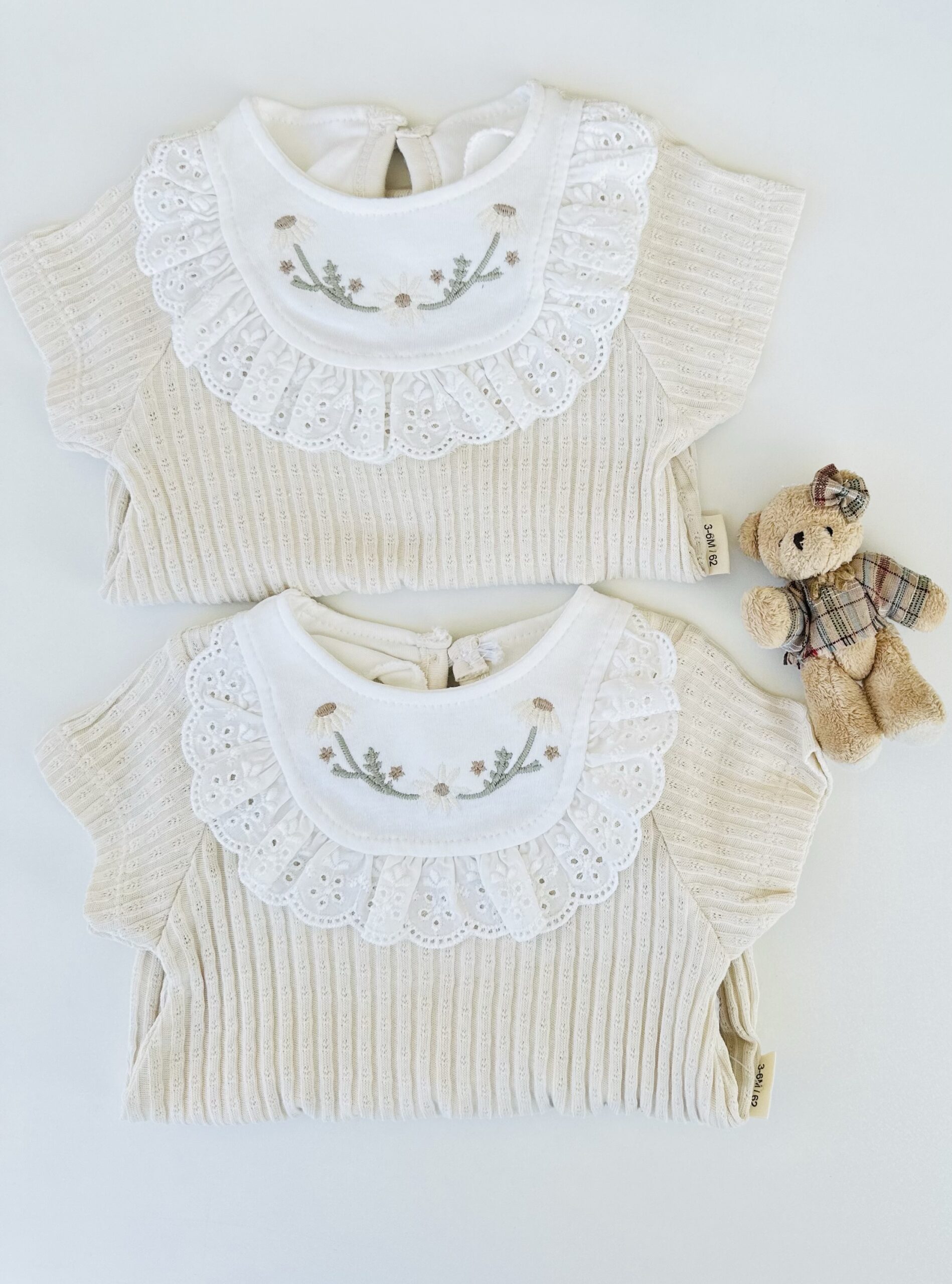 Kız Bebek Bohem Fırfırlı Çiçek Desenli Krem Elbise ve Bandana Takım
