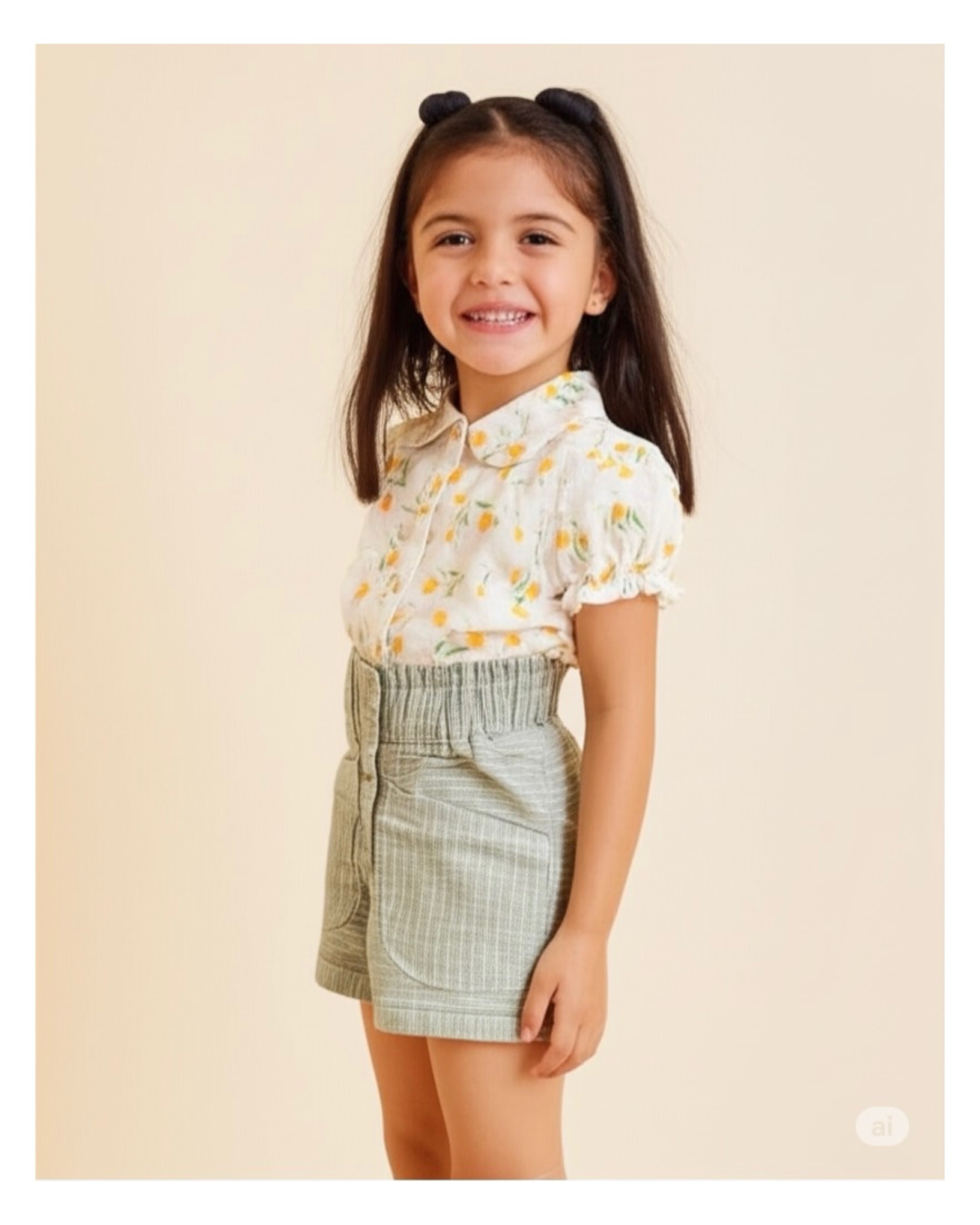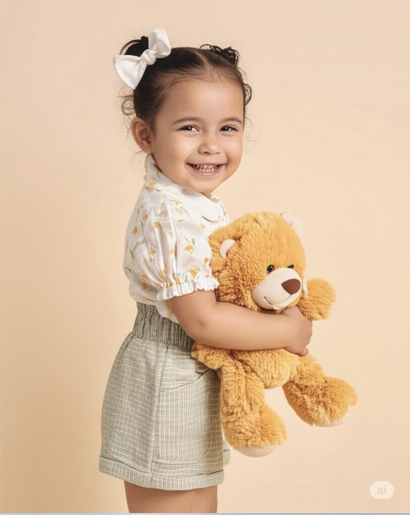 Katlı Fırfırlı Lale Detaylı Saç Tokalı Bebek Elbisesi
