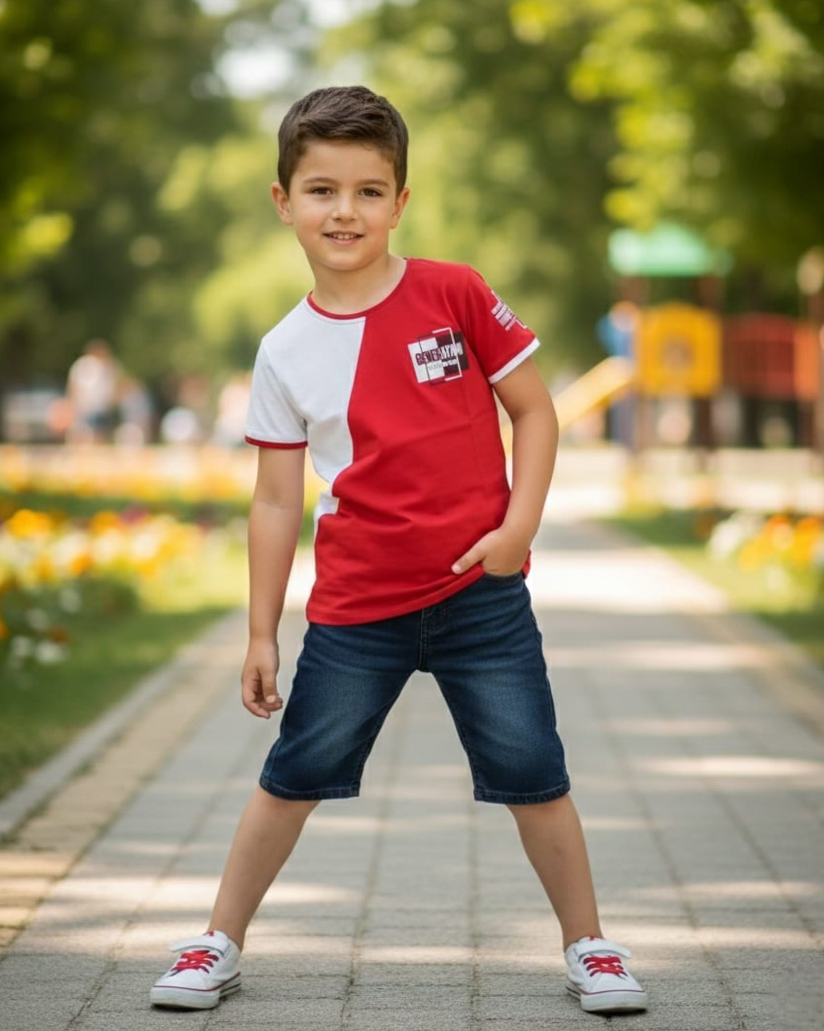 Lacivert Sonic Tema Baskılı Unisex Çocuk Tişört
