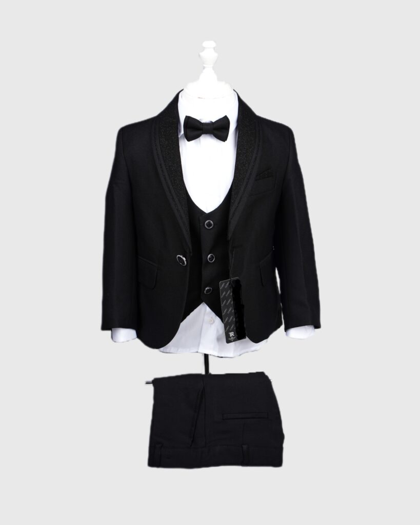 Yaka Detaylı Ceketli Yelekli 5 Parça Erkek Çocuk Takım Elbisesi