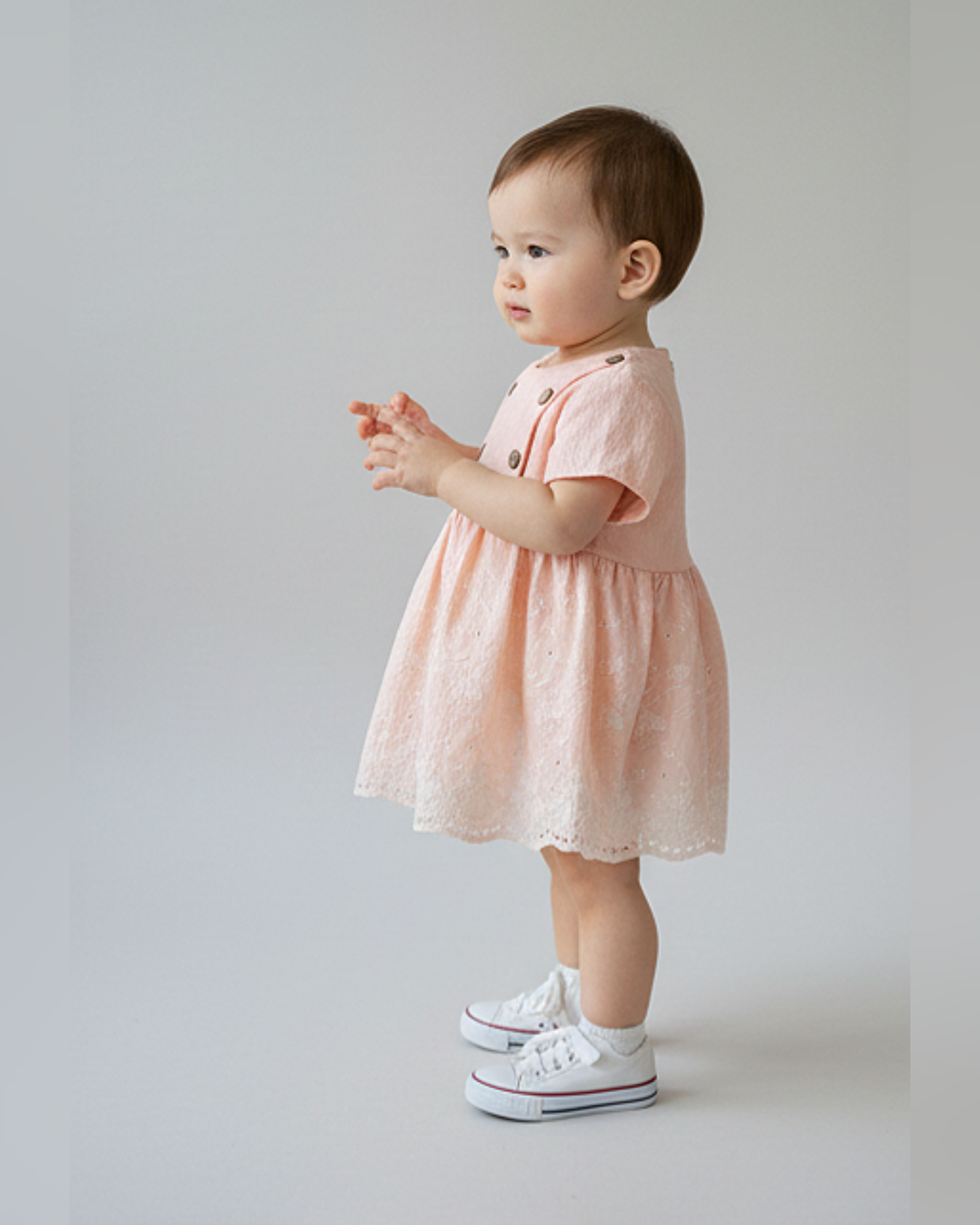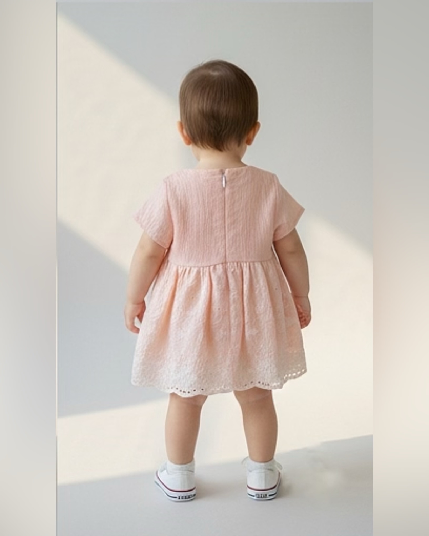 Güpürlü Jakarlı Somon Renk Bebek Elbise