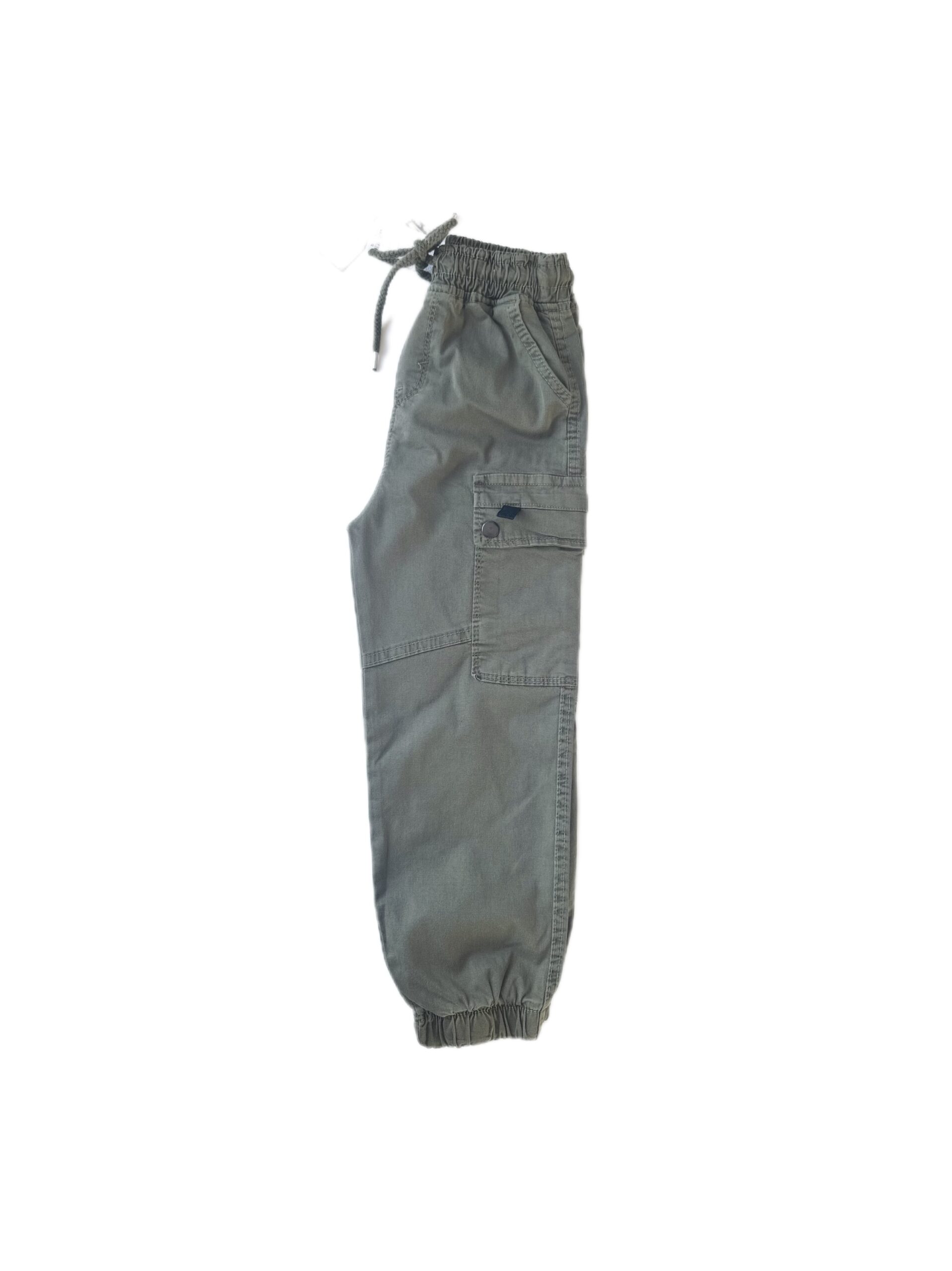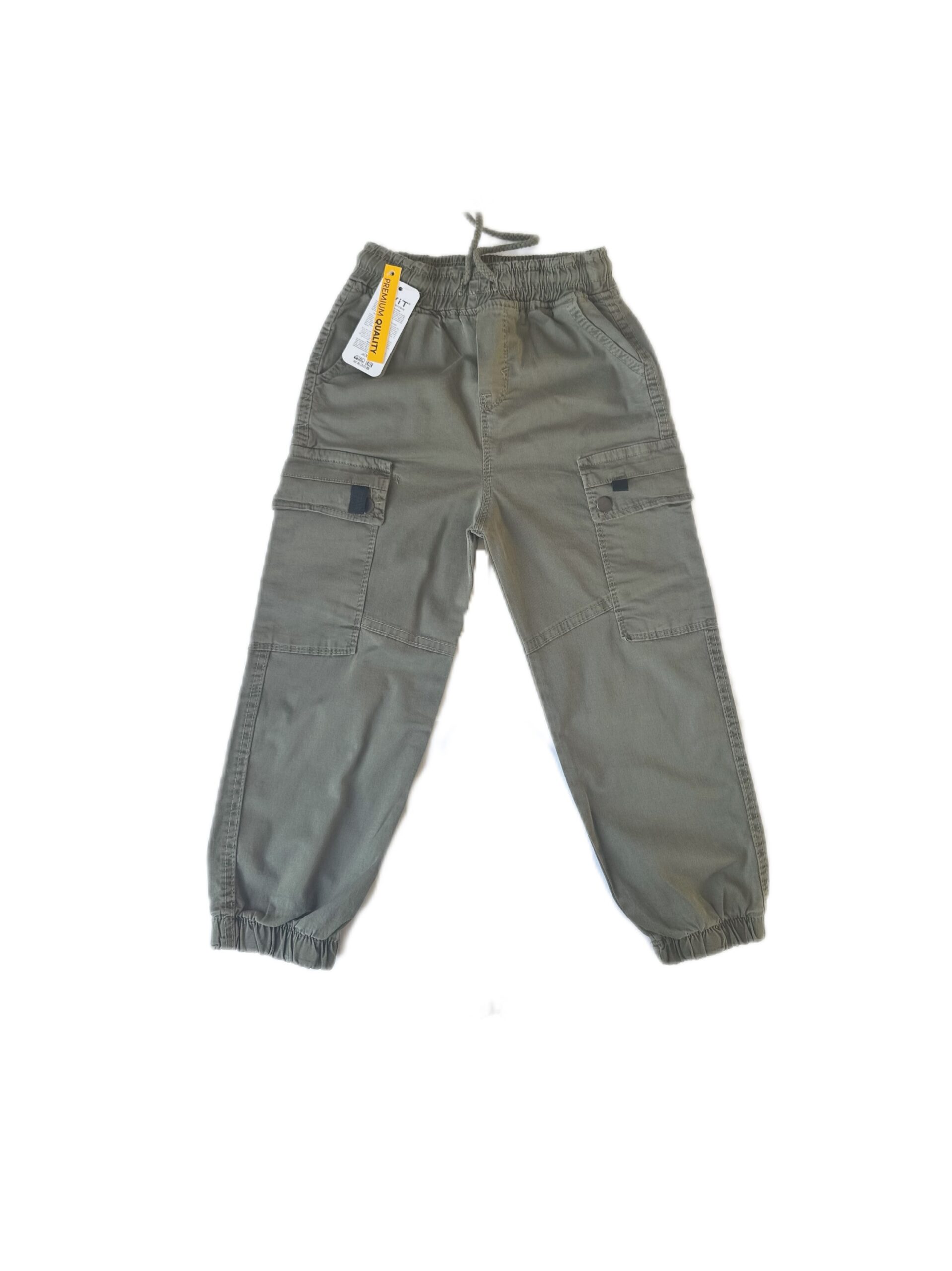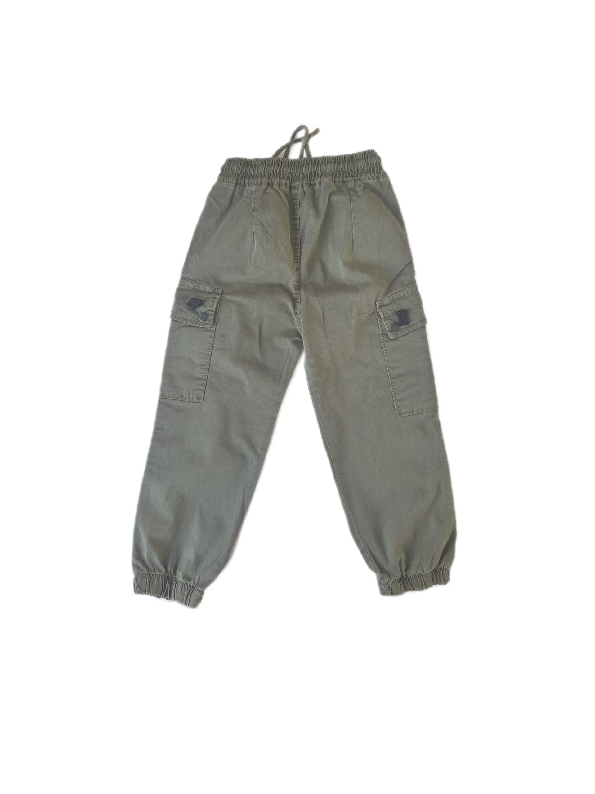 Haki Yeşili Beli ve Paçası Lastikli Kargo Cepli Erkek Çocuk Pantolonu
