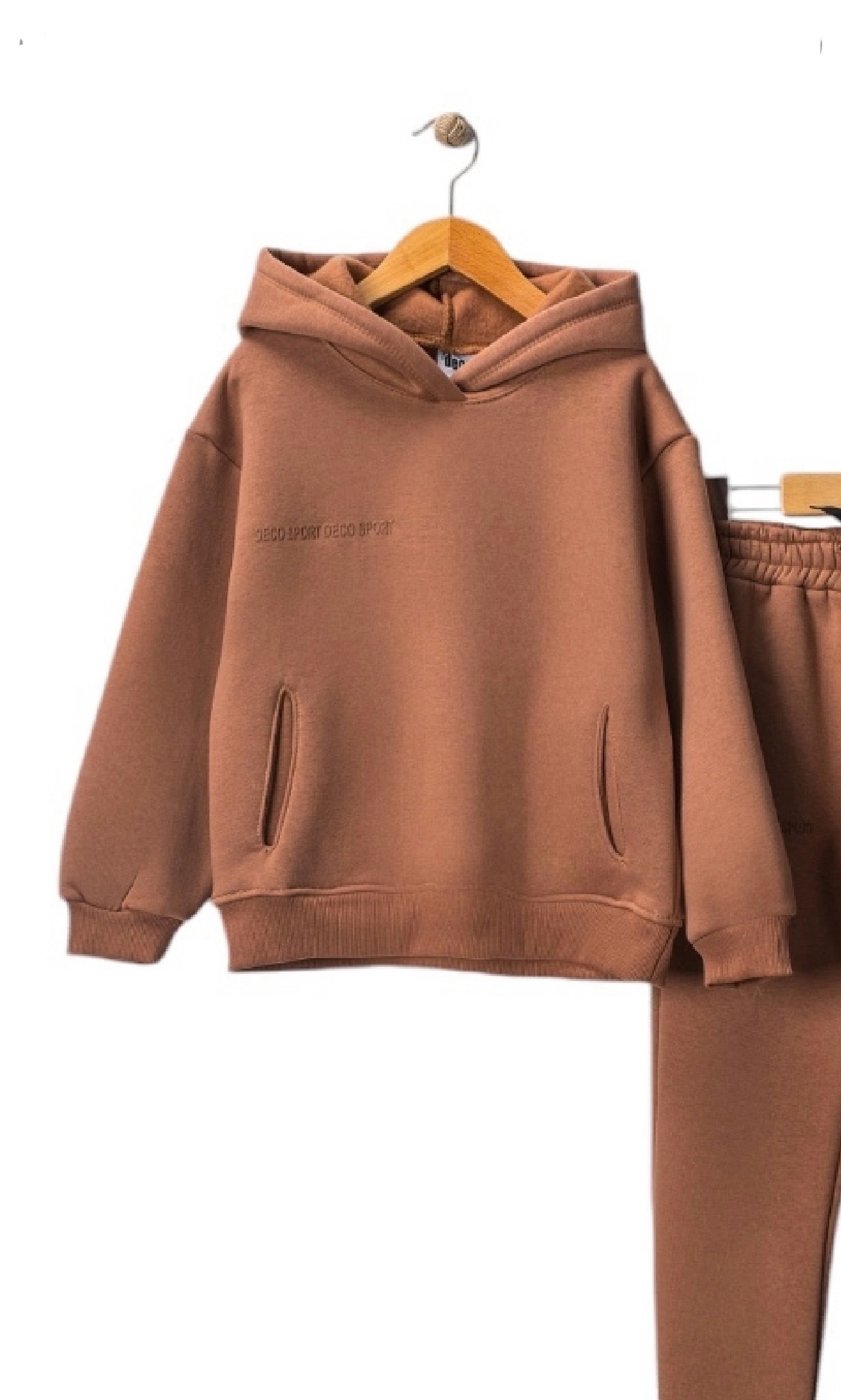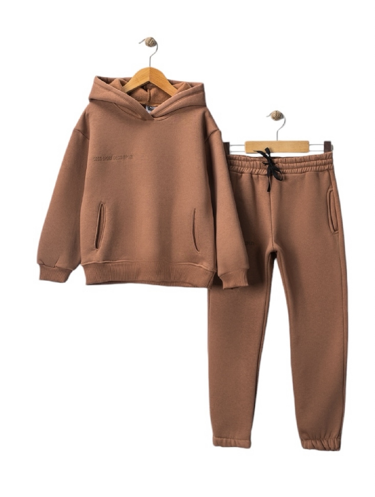 Kahverengi Kapşonlu Üç İp Şardonlu Erkek Çocuk Takımı