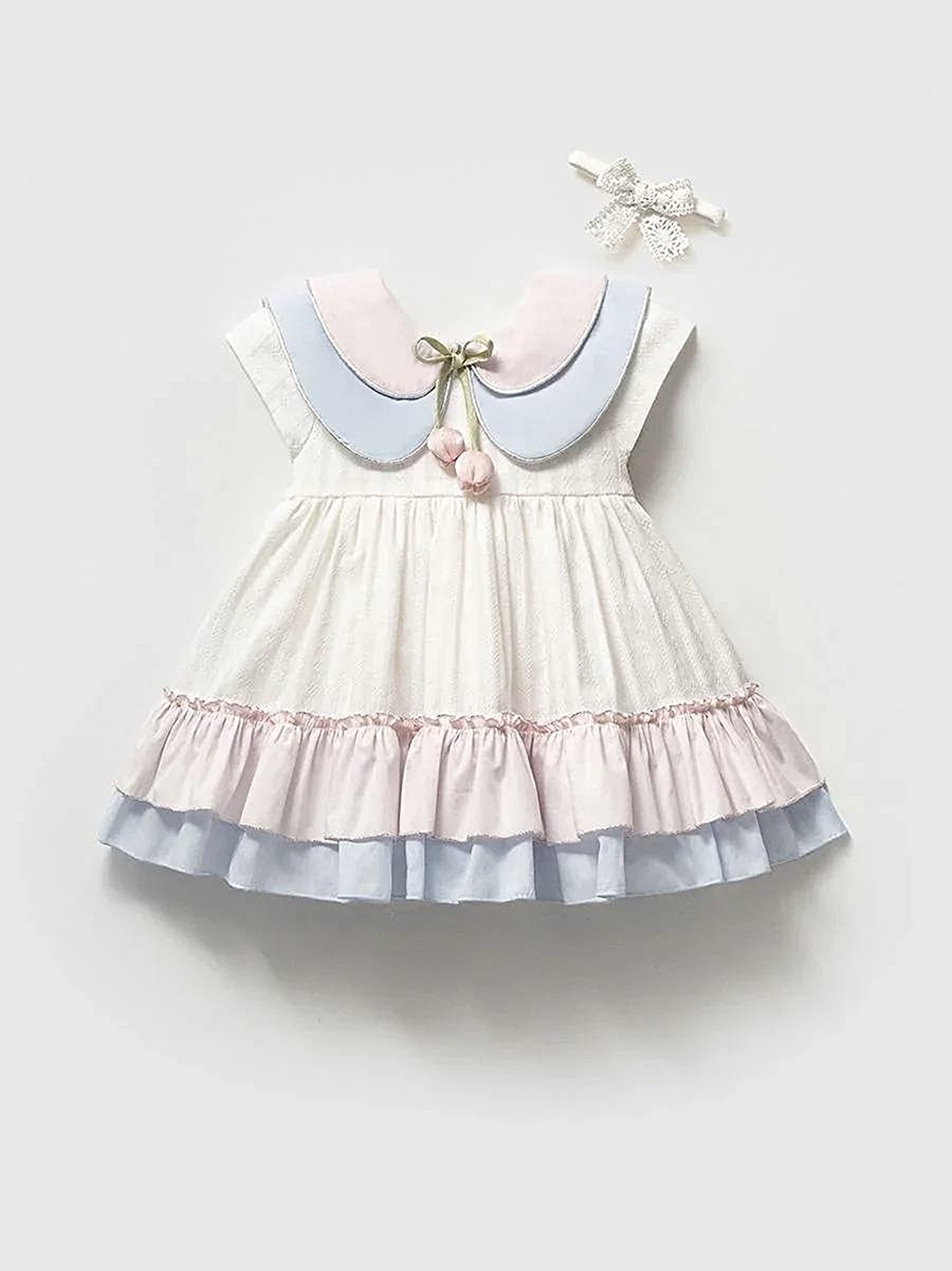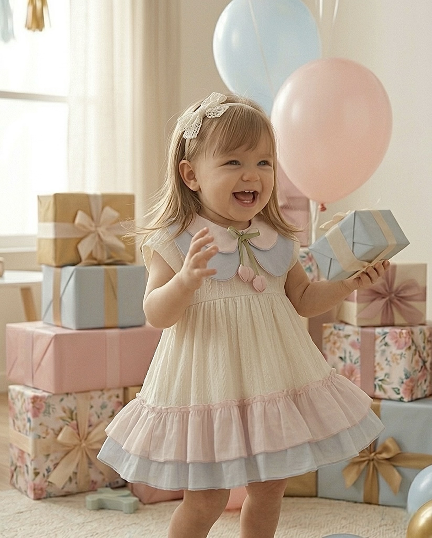 Vita Pastel Rüya – Katlı Fırfırlı ve Lale Detaylı Bebek Elbisesi