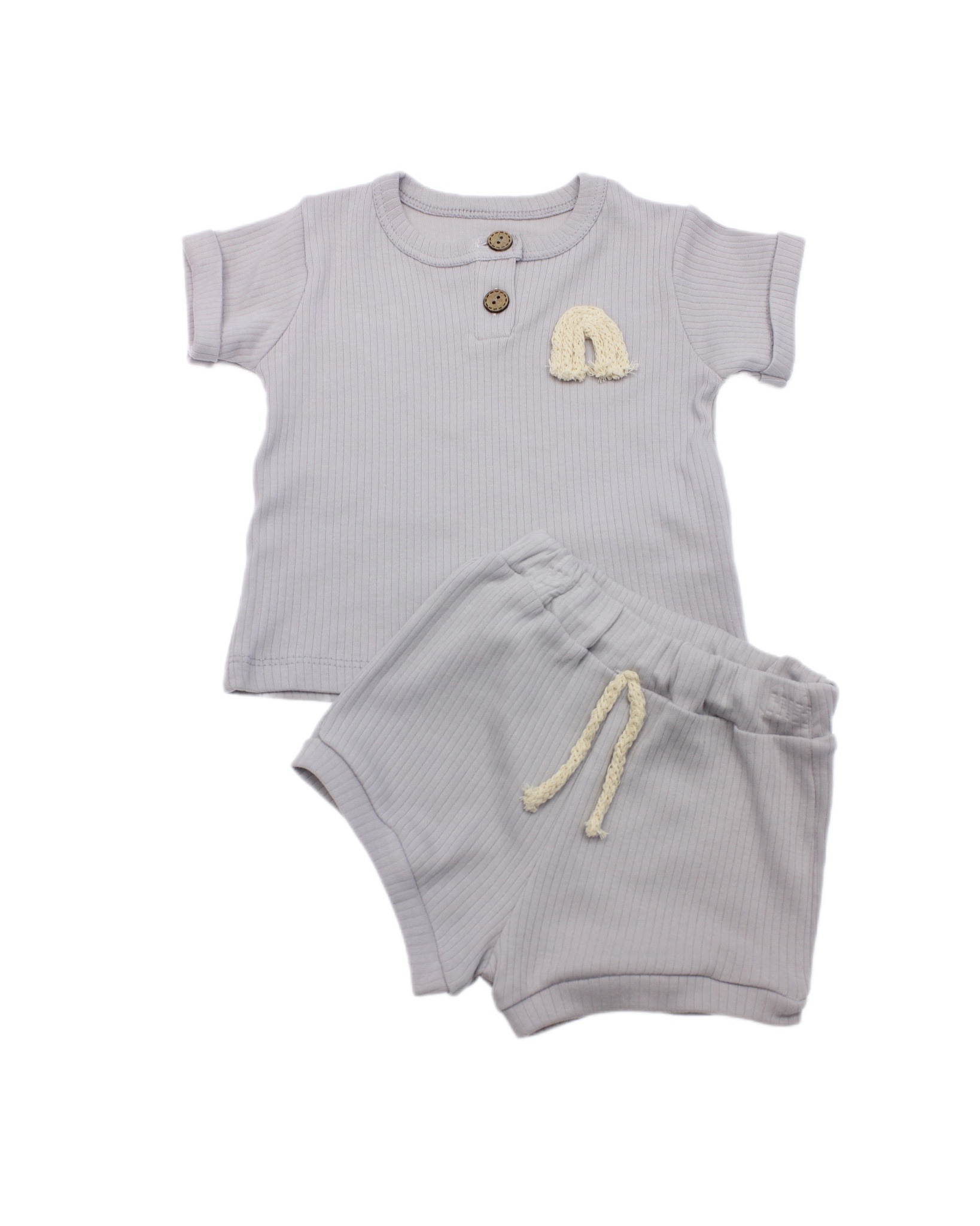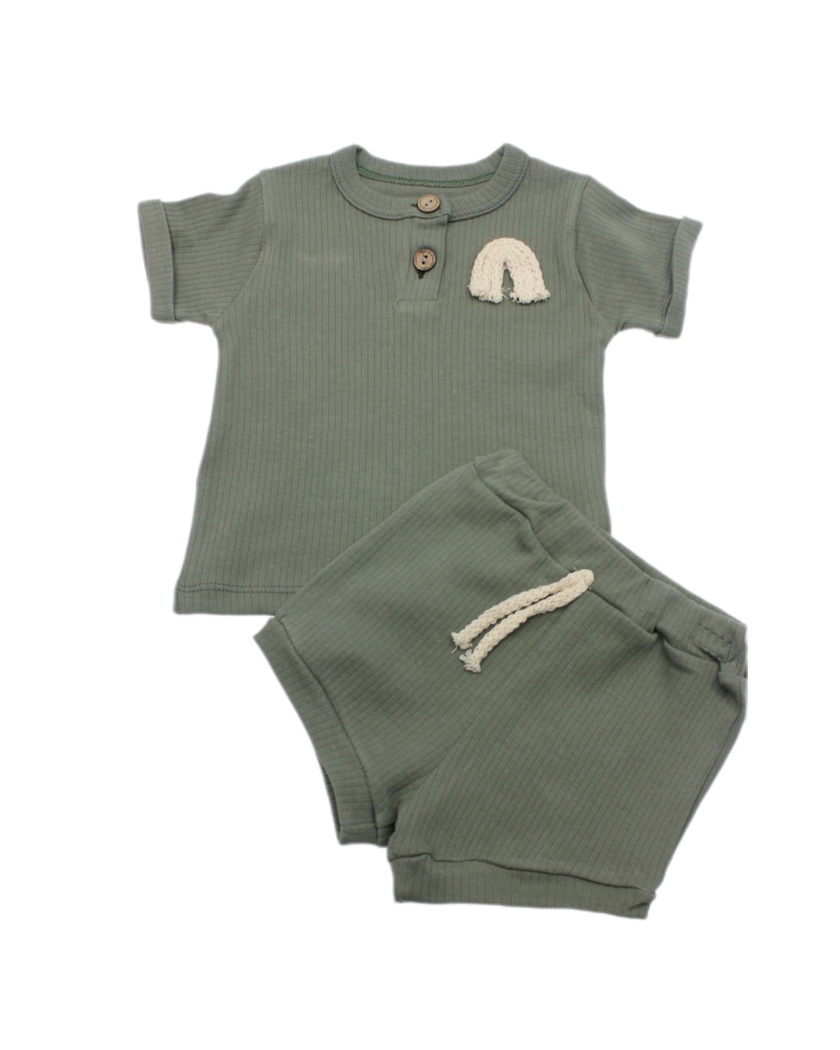 Düğmeli Şortlu Pamuklu Penye İkili Takımı adet