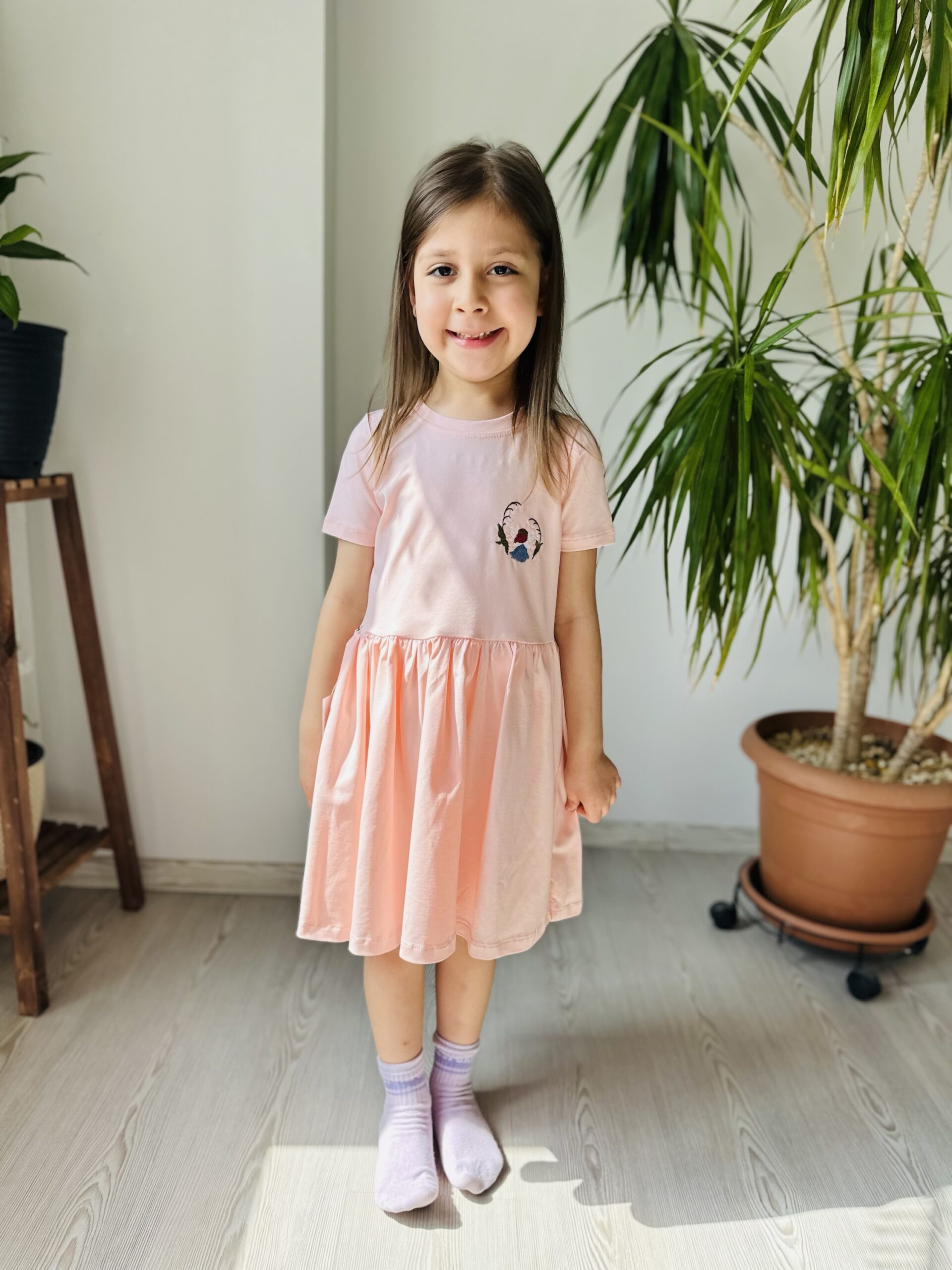 Melek Desen Nakışlı Kız Çocuk Elbisesi