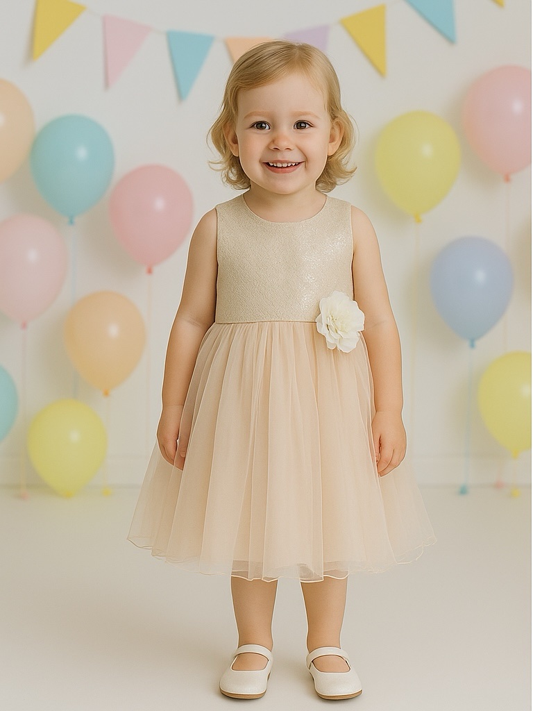 Katlı Fırfırlı Lale Detaylı Saç Tokalı Bebek Elbisesi