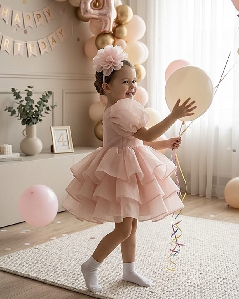 Balon Kol Kabarık Etek Prenses Model Kız Çocuk Abiye Elbisesi