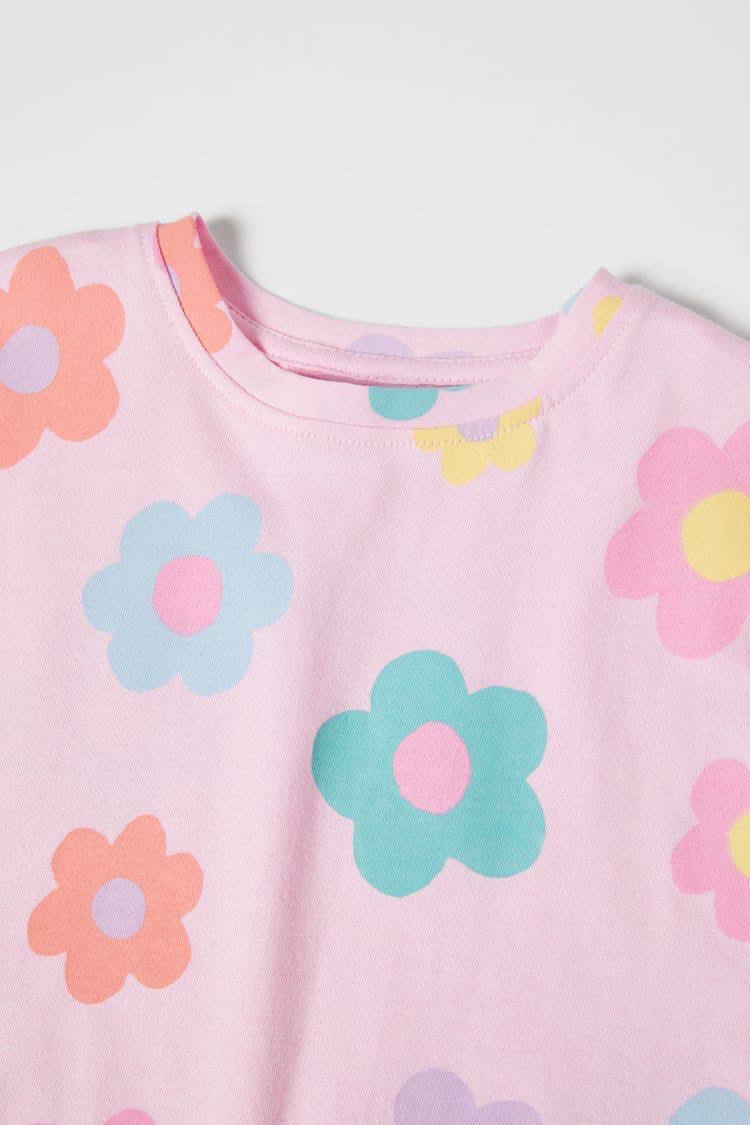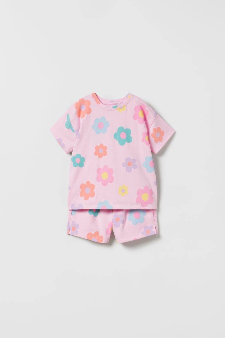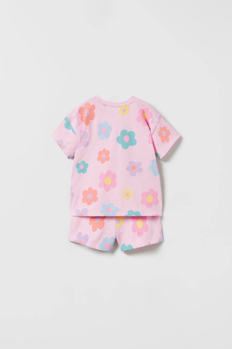Papatya Çiçek Desenli Pembe Şortlu Takım