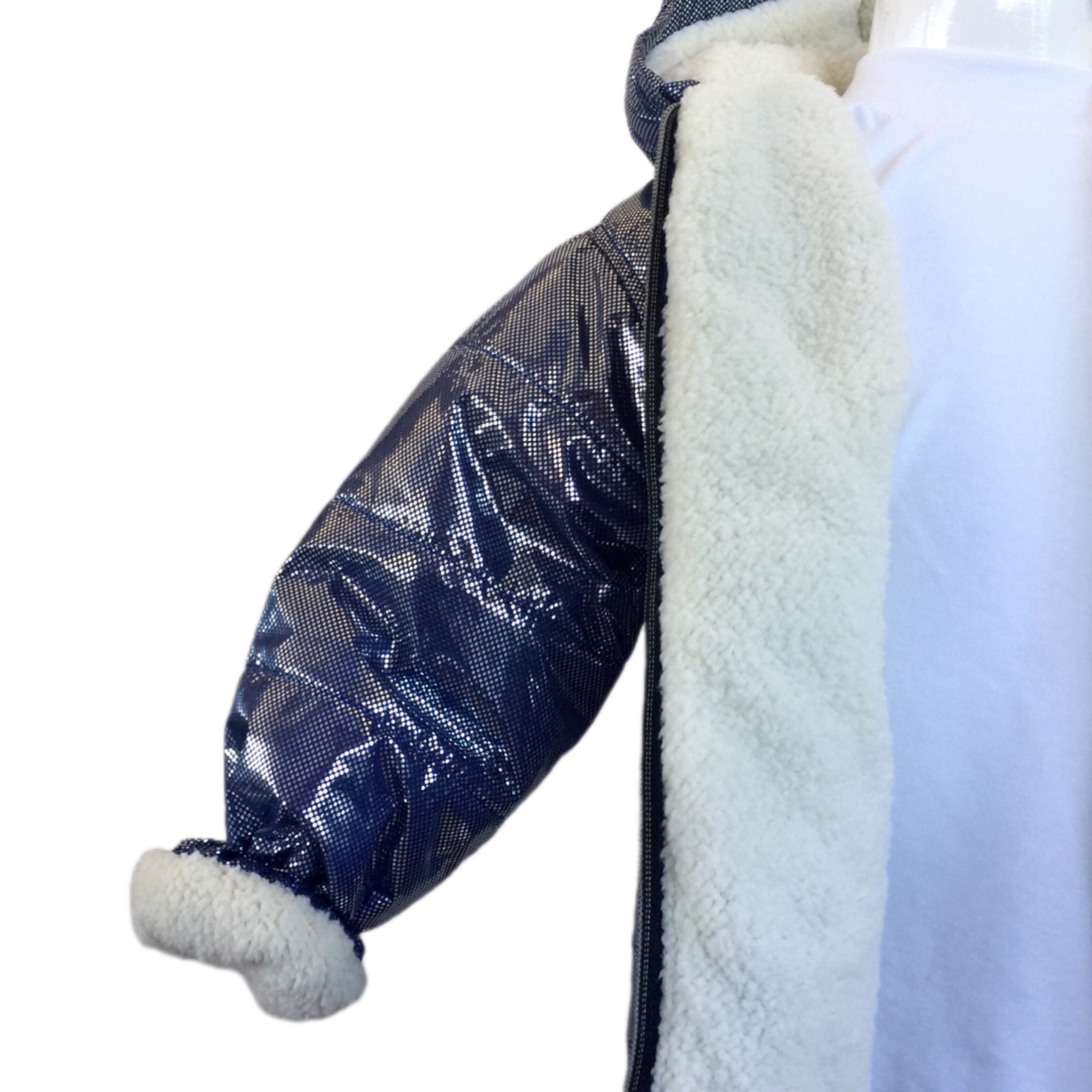 Parlak Görünümlü Kapüşonlu Içi Yünlü Kız Çocuk Montu