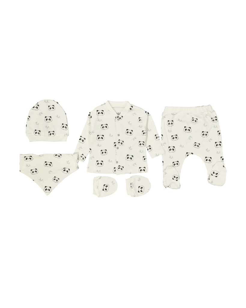 Panda Baskılı Beş Parçalı Bebek Takımı